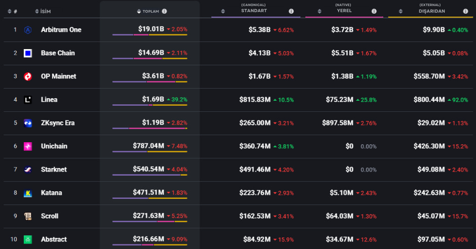 Bu hafta TVL (Toplam Kilitli Değer) köşemizde, Web3 ekosisteminde hızla büyüyen Layer-2 projelerini mercek altına alıyoruz. Bu gelişmeler, Layer-2 çözümlerinin potansiyelini ve ekosistemdeki önemini bir kez daha gözler önüne seriyor.