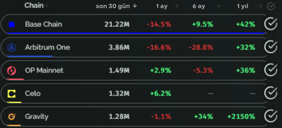Bu köşemizde, Web3 ekosisteminde yükselişe geçen Layer 2 projelerini inceleyip, son 7 gün içinde en fazla büyüme kaydeden projelerin performansını değerlendiriyoruz. Ayrıca, toplam değer kilitli (TVL) sıralamasında önde gelen Layer 2 çözümlerine de yer veriyoruz.