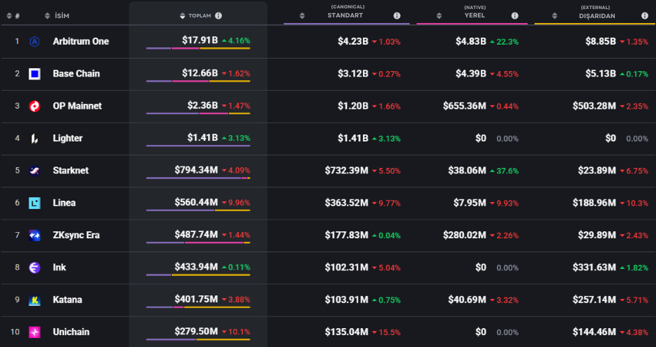 Bu hafta TVL (Toplam Kilitli Değer) köşemizde, Web3 ekosisteminde hızla büyüyen Layer-2 projelerini mercek altına alıyoruz. Bu gelişmeler, Layer-2 çözümlerinin potansiyelini ve ekosistemdeki önemini bir kez daha gözler önüne seriyor.