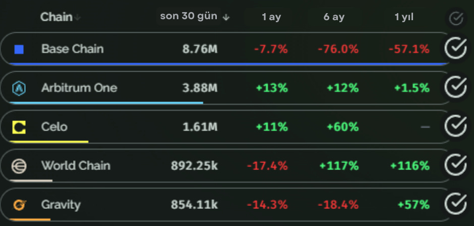 Bu köşemizde, Web3 ekosisteminde yükselişe geçen Layer 2 projelerini inceleyip, son 7 gün içinde en fazla büyüme kaydeden projelerin performansını değerlendiriyoruz. Ayrıca, toplam değer kilitli (TVL) sıralamasında önde gelen Layer 2 çözümlerine de yer veriyoruz.