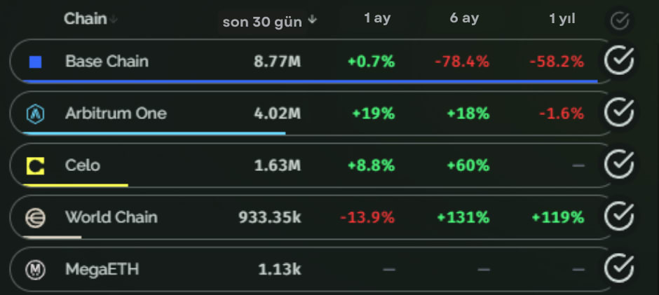 Bu köşemizde, Web3 ekosisteminde yükselişe geçen Layer 2 projelerini inceleyip, son 7 gün içinde en fazla büyüme kaydeden projelerin performansını değerlendiriyoruz. Ayrıca, toplam değer kilitli (TVL) sıralamasında önde gelen Layer 2 çözümlerine de yer veriyoruz.