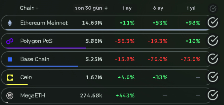 Bu köşemizde, Web3 ekosisteminde yükselişe geçen Layer 2 projelerini inceleyip, son 7 gün içinde en fazla büyüme kaydeden projelerin performansını değerlendiriyoruz. Ayrıca, toplam değer kilitli (TVL) sıralamasında önde gelen Layer 2 çözümlerine de yer veriyoruz.