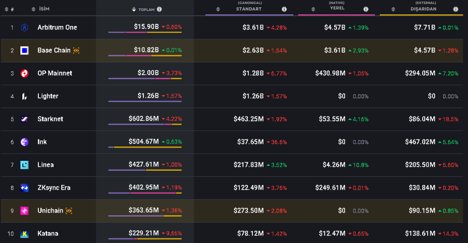 Bu hafta TVL (Toplam Kilitli Değer) köşemizde, Web3 ekosisteminde hızla büyüyen Layer-2 projelerini mercek altına alıyoruz. Bu gelişmeler, Layer-2 çözümlerinin potansiyelini ve ekosistemdeki önemini bir kez daha gözler önüne seriyor.