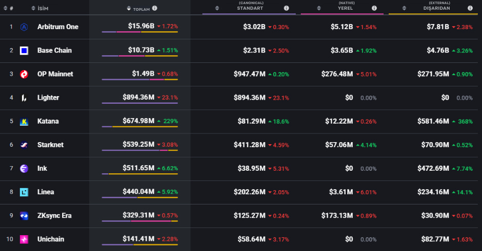 Bu hafta TVL (Toplam Kilitli Değer) köşemizde, Web3 ekosisteminde hızla büyüyen Layer-2 projelerini mercek altına alıyoruz. Bu gelişmeler, Layer-2 çözümlerinin potansiyelini ve ekosistemdeki önemini bir kez daha gözler önüne seriyor.
